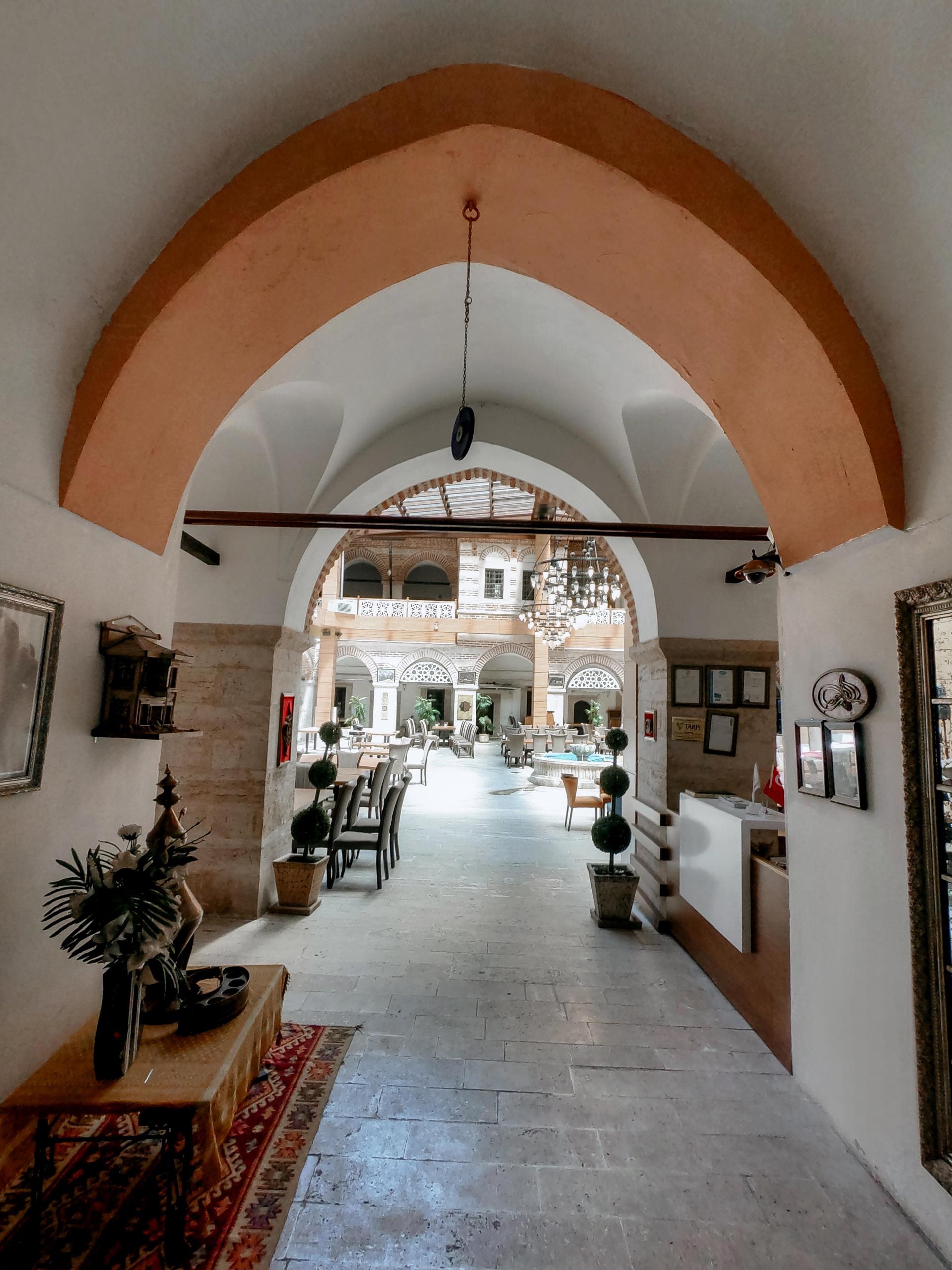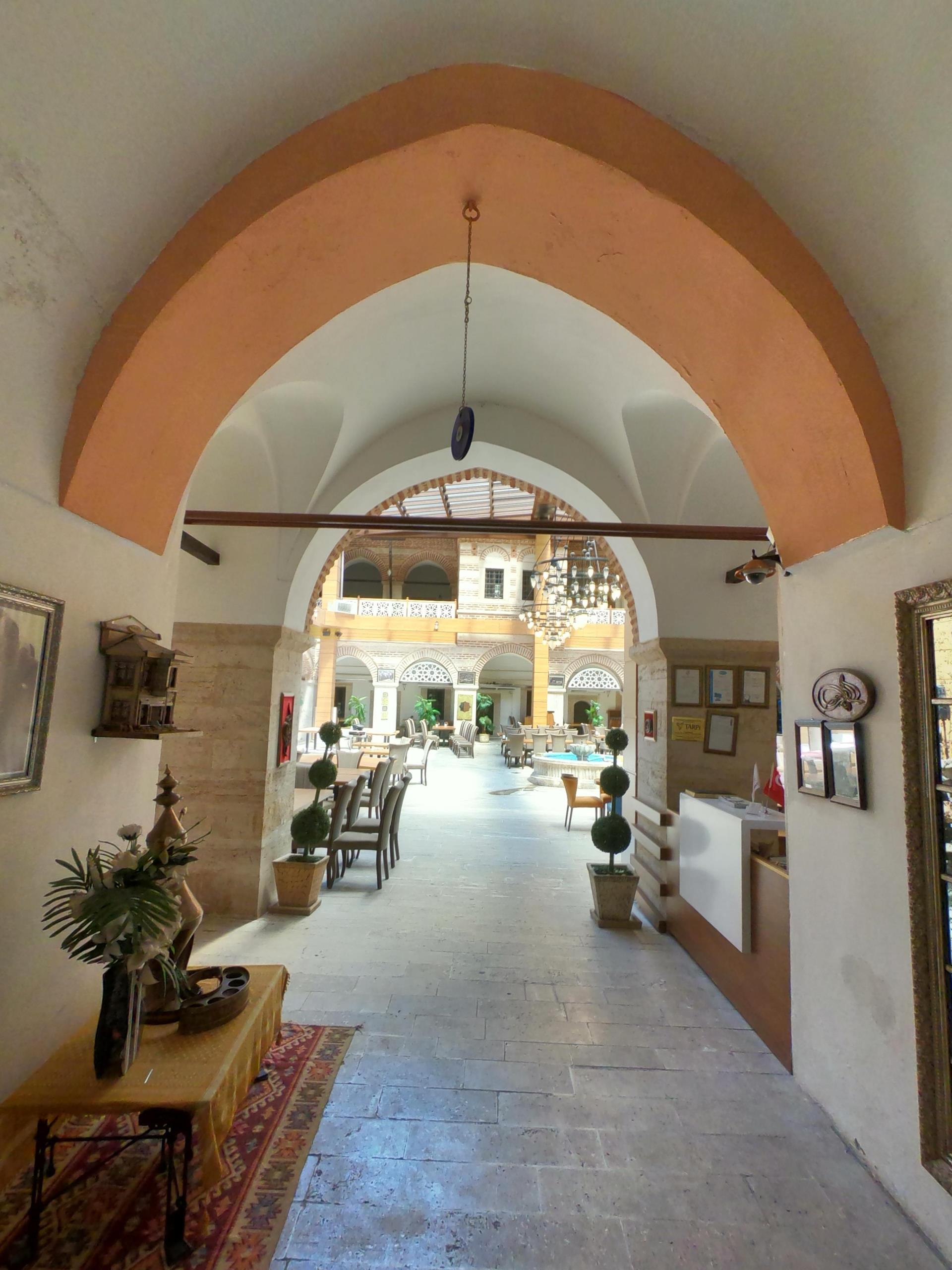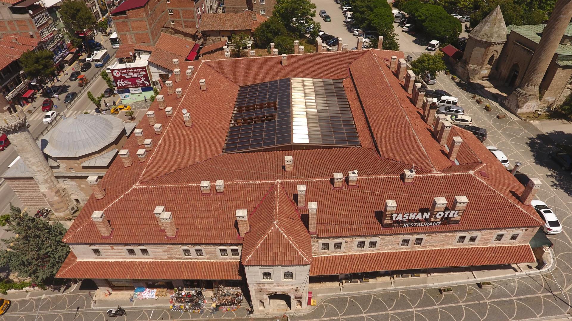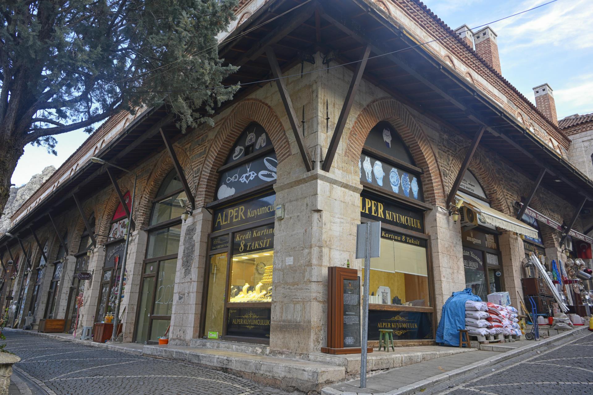 Amasya Mutasarrıfı Rahtuvan Hacı Mehmet Paşa tarafından 1699 yılında yaptırılmıştır. İki katlı olarak yapılan taşhan dikdörtgen planlı ve iç avluludur. Giriş kapısı basık yay kemerli olup inşa kitabesi kapı üzerinde yer alır. Kitabeye göre yapıyı Ferman Kalfa adlı bir usta yapmıştır. Beden duvarları kesme taş ve tuğla ile inşa edilmiştir. Amasya Valiliğince esaslı bir şekilde restorasyonu yapılan taşhan halen otel ve restoran olarak hizmet vermektedir.